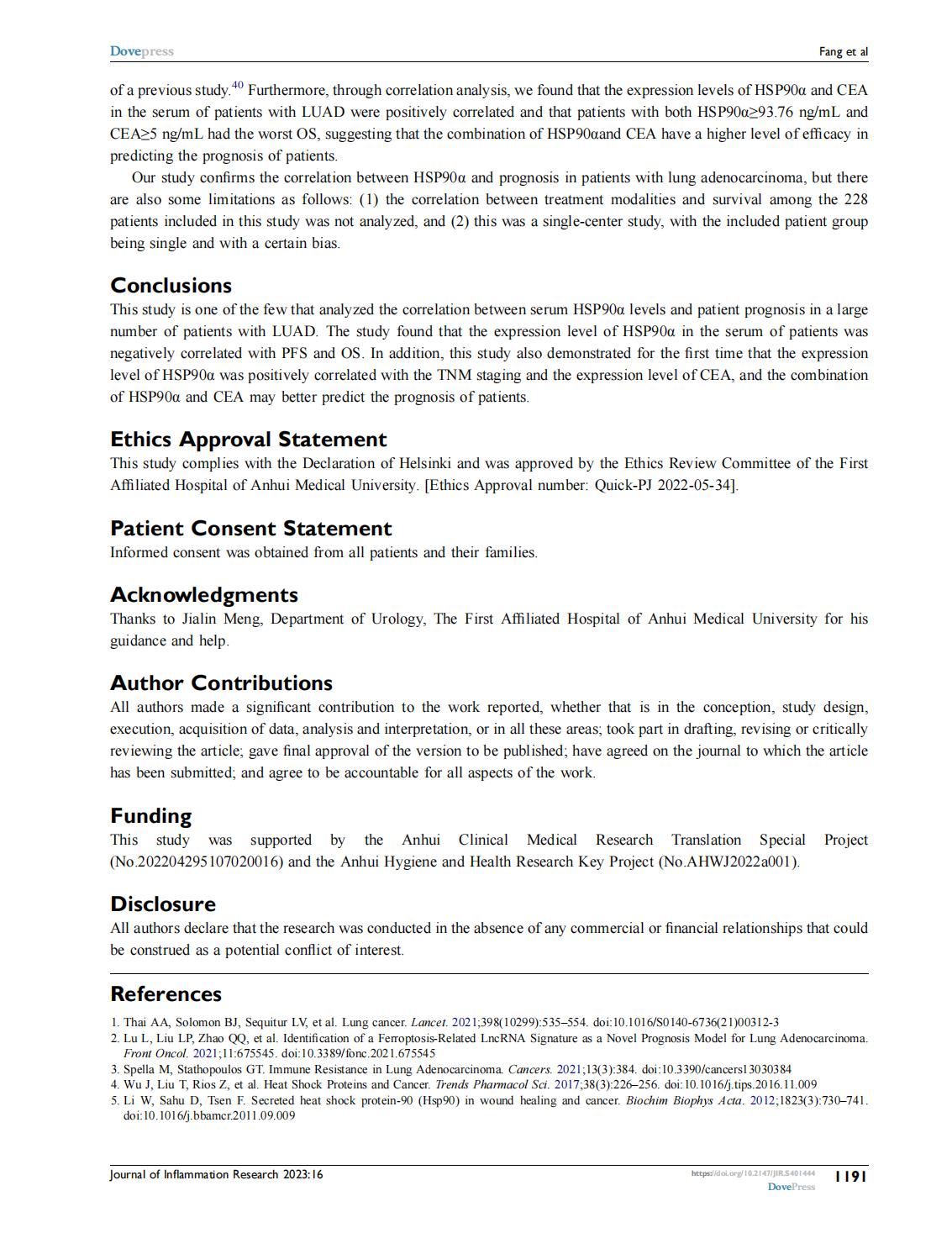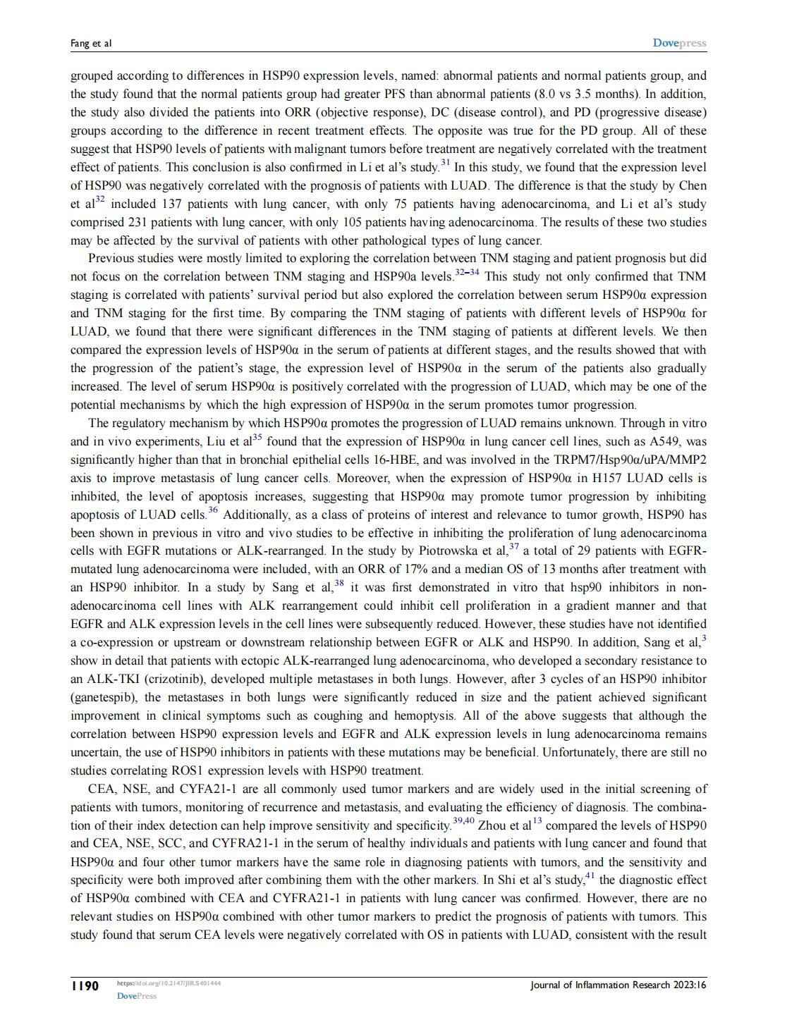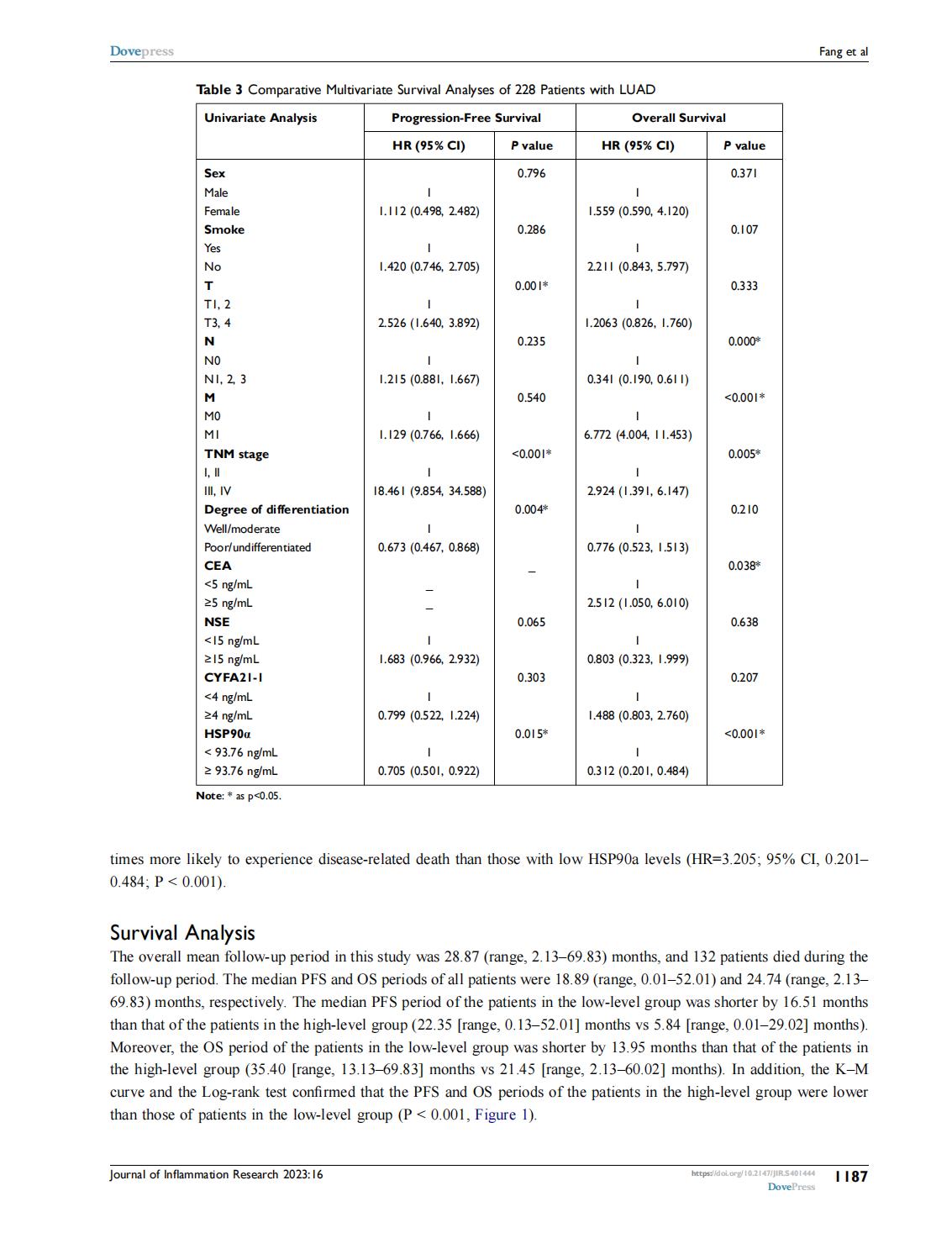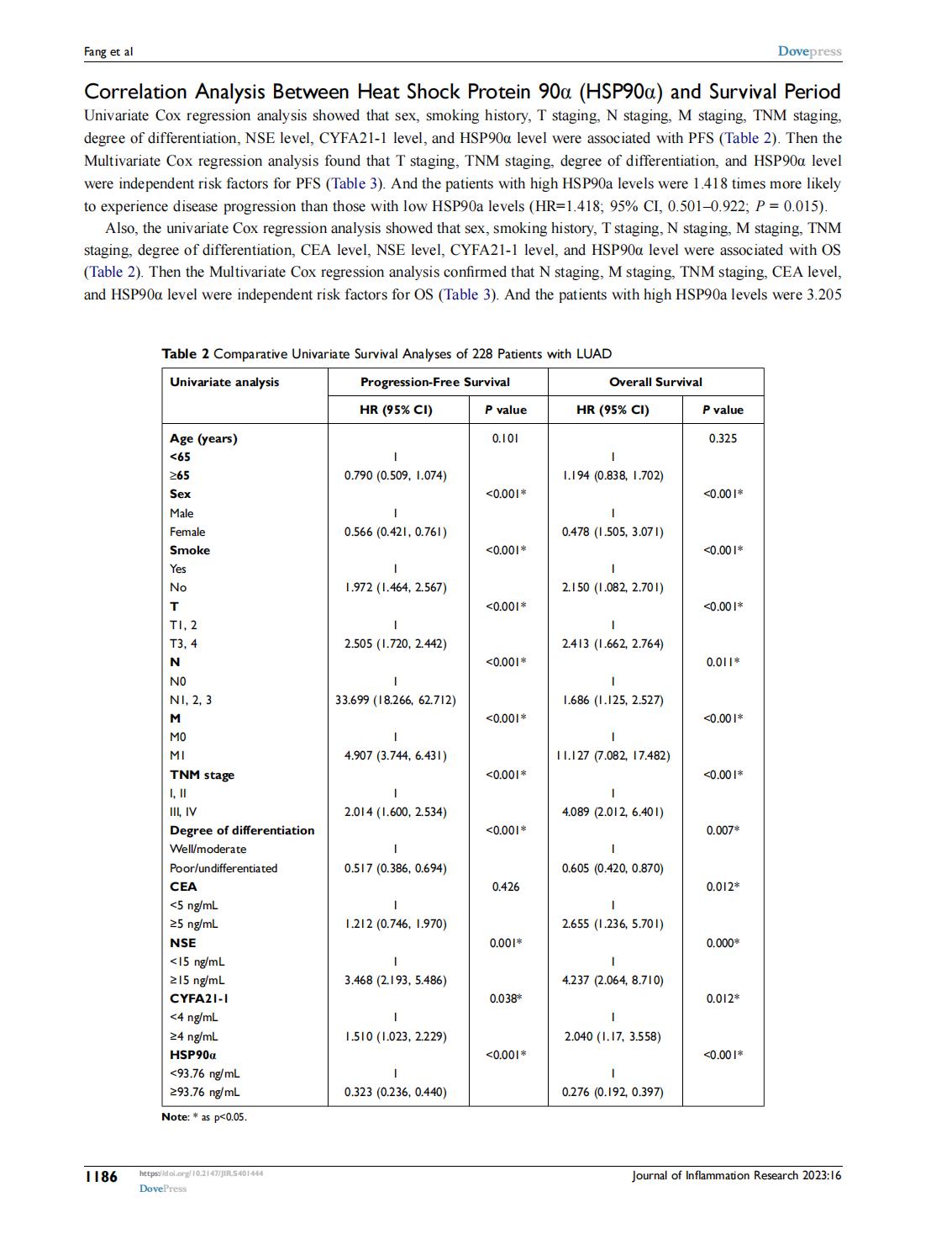 Predictive Value of Serum Heat Shock Protein 90α on the Prognosis of Patients with Lung Adenocarcinoma